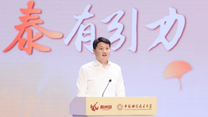 姜冬冬在致辞中代表泰州市委、市政府对中国科大给予的大力支持表示衷心感谢。在简要介绍泰州经济社会发展情况后,他说,当前泰州正聚焦打造长三角具有重要影响力的先进制造业基地,致力构建以“大海新晨”为标志的现代化产业体系,加快建设产业科创强市。中国科大是肩负国家使命、闪耀科学光芒的顶尖学府,被誉为“科学家的摇篮”。从长三角最年轻的设区市——泰州,来到C9联盟中最年轻的主角——中国科大,我们倍感自豪、满怀感动,十分期待与大家携手共创幸福、共享幸福,诚挚欢迎大家到泰州走一走、看一看。如果你选择到泰就业,全市国家级重点实验室等高端平台为你敞开,3万家工业企业求贤若渴,高层次人才事业编制助你“上岸”;如果你选择到泰创业,我们提供最高1亿元的人才专项扶持、单项2000万元的重磅资助,“孵化+导师+投资”的全链条服务为你“一键三连”;如果你选择在泰生活,我们以“中国最佳引才城市”之名,为你破解“落脚地”“另一半”“下一代”等成长烦恼。